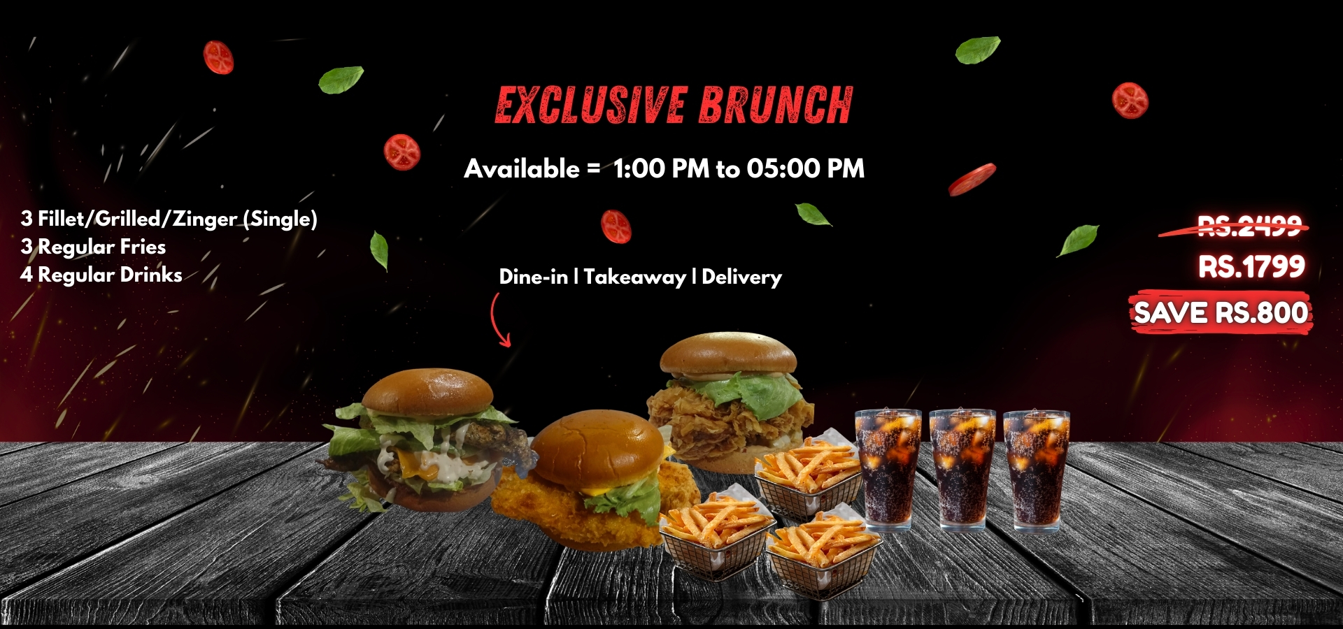 SlideSlide Hot Favourite Deals Solo Meal ₨ 649 Add to cart Loaded Lunch ₨ 2,699 Add to cart Ultimate Feast 1 ₨ 3,299 Please Choose Thunder Feast ₨ 3,199 Add to cart Saver Supreme ₨ 1,999 Add to cart Ultimate Feast 2 ₨ 2,999 Please Choose Duo Crunch ₨ 1,799 Add to cart Exclusive Brunch ₨ 1,799 Add to cart Midnight Madness ₨ 1,199 Read more You can only order from 12:00 AM to 4:00 AM. Duet Meal ₨ 1,249 Add to cart