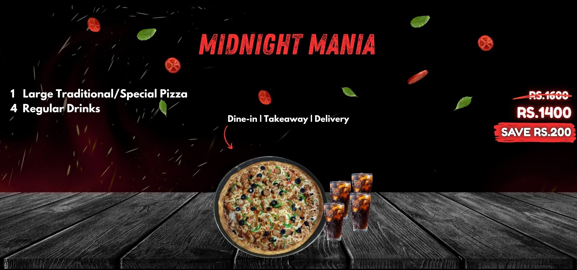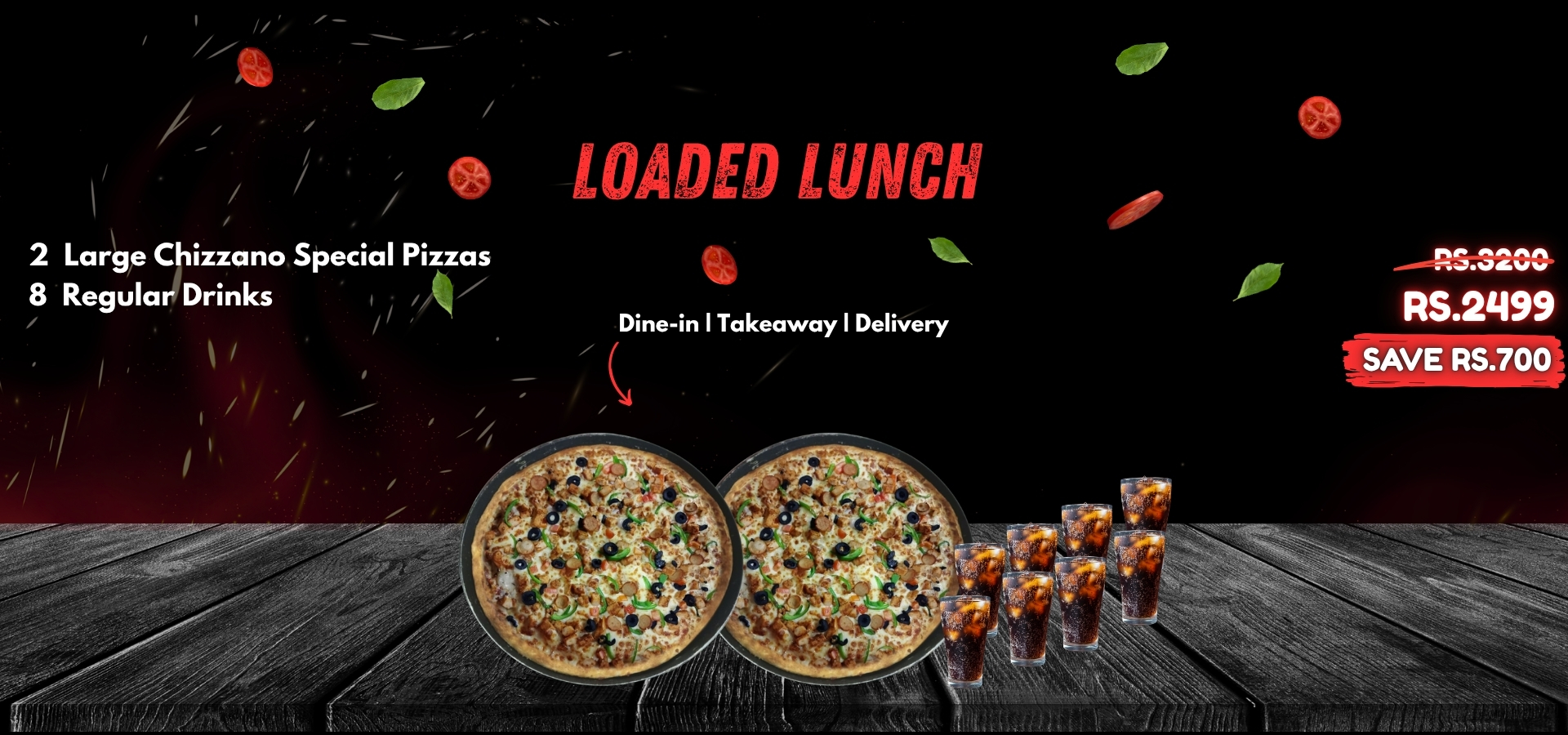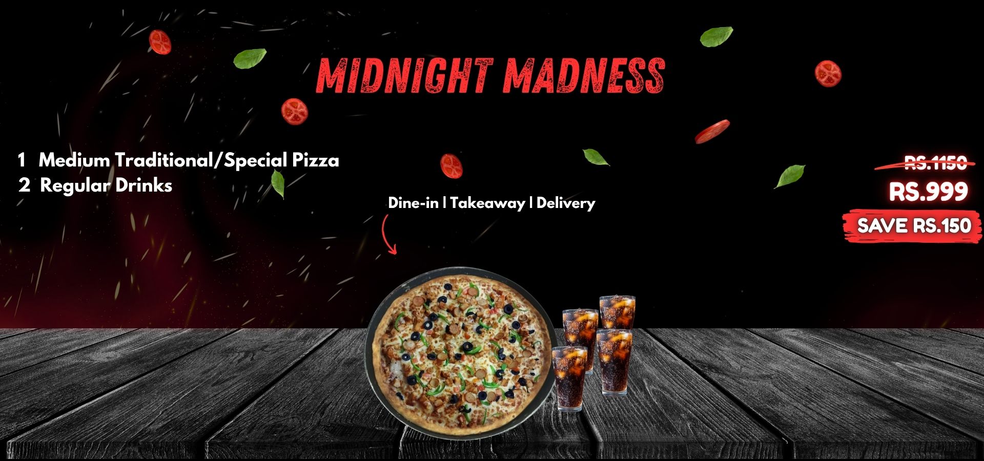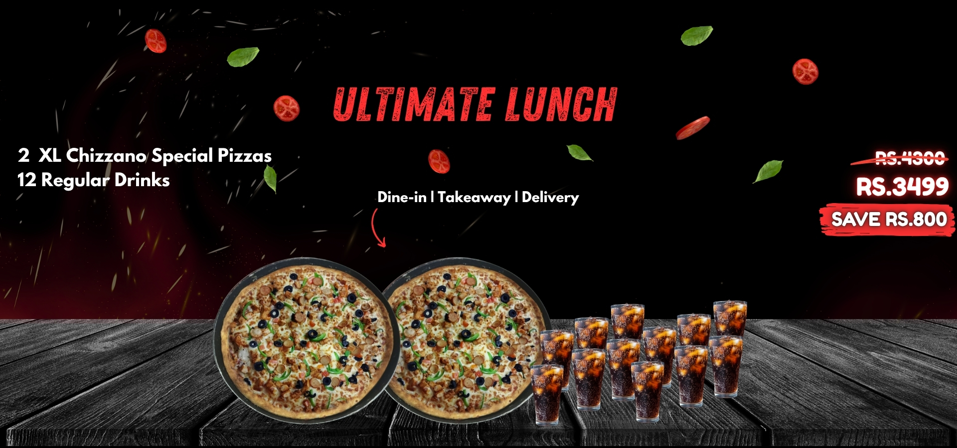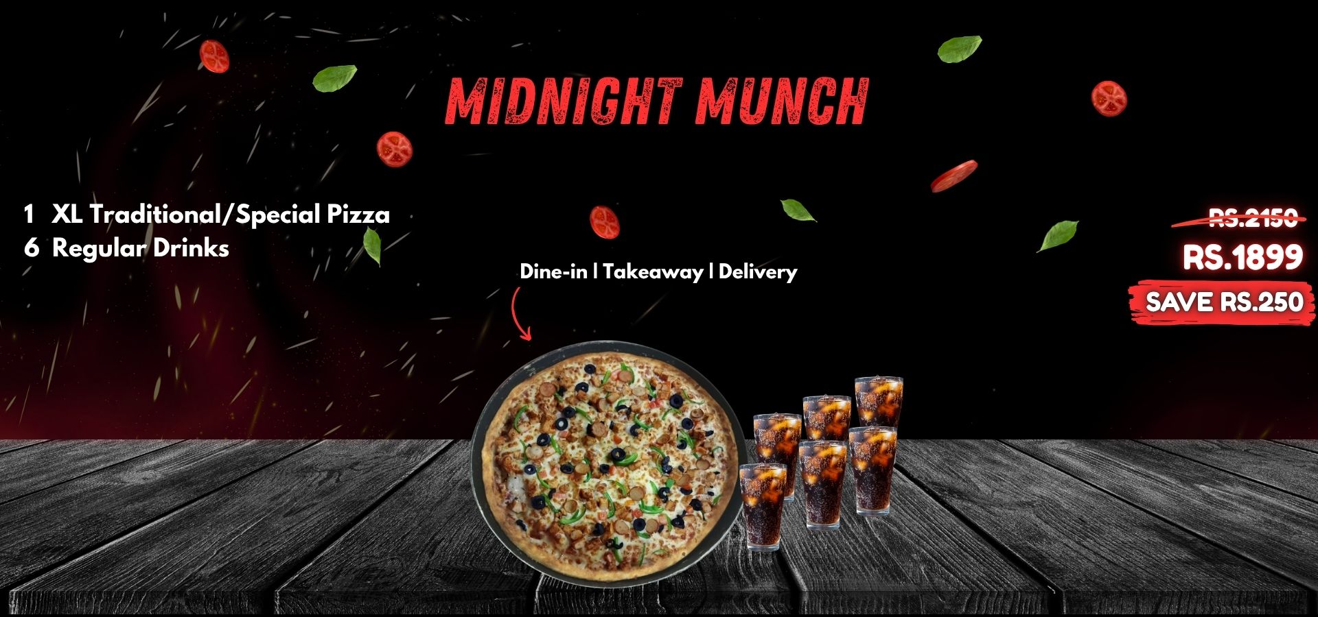 SlideMidnight MadnessMidnight ManiaMidnight MunchDelight LunchUltimate Lunch Hot Favourite Deals Signature Combo ₨ 3,399 Please Choose Three Meal ₨ 1,599 Add to cart Family Combo ₨ 4,999 Please Choose Delight Lunch ₨ 1,599 Read more Valid 1:00 PM to 5:00 PM. Savory Feast ₨ 799 Add to cart Ultimate Lunch ₨ 3,499 Read more Valid 1:00 PM to 5:00 PM. Solo Meal ₨ 549 Add to cart Italian Maxx ₨ 1,299 Add to cart Ultimate Feast 1 ₨ 2,599 Please Choose Thunder Feast ₨ 2,499 Add to cart